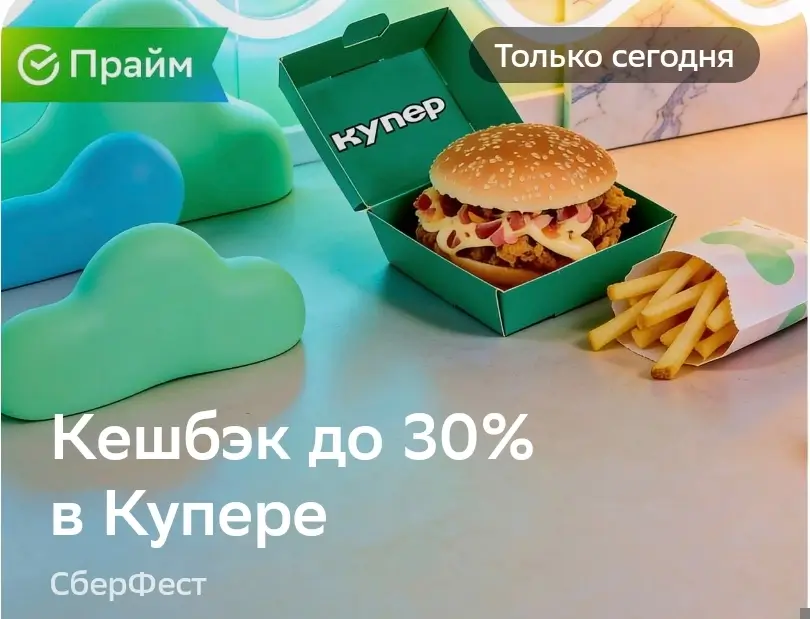 Только сегодня, 26 марта, в рамках акции СберФест вы можете получить кешбэк до 30% на один заказ в Купере. Для участия необходимо: войти в мобильное приложение банка, перейти в раздел - для жизни, активировать предложение, оплатить покупку картой Сбера. Не забываем авторизоваться в Купере по Сбер ID для начисления бонусов.