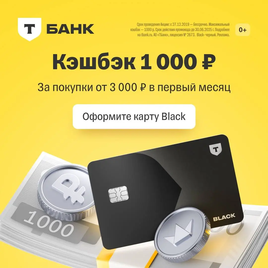 Условия акции: предложение действует для новых держателей карты Black. Подробная информация об условиях программы доступна на официальном сайте банка.