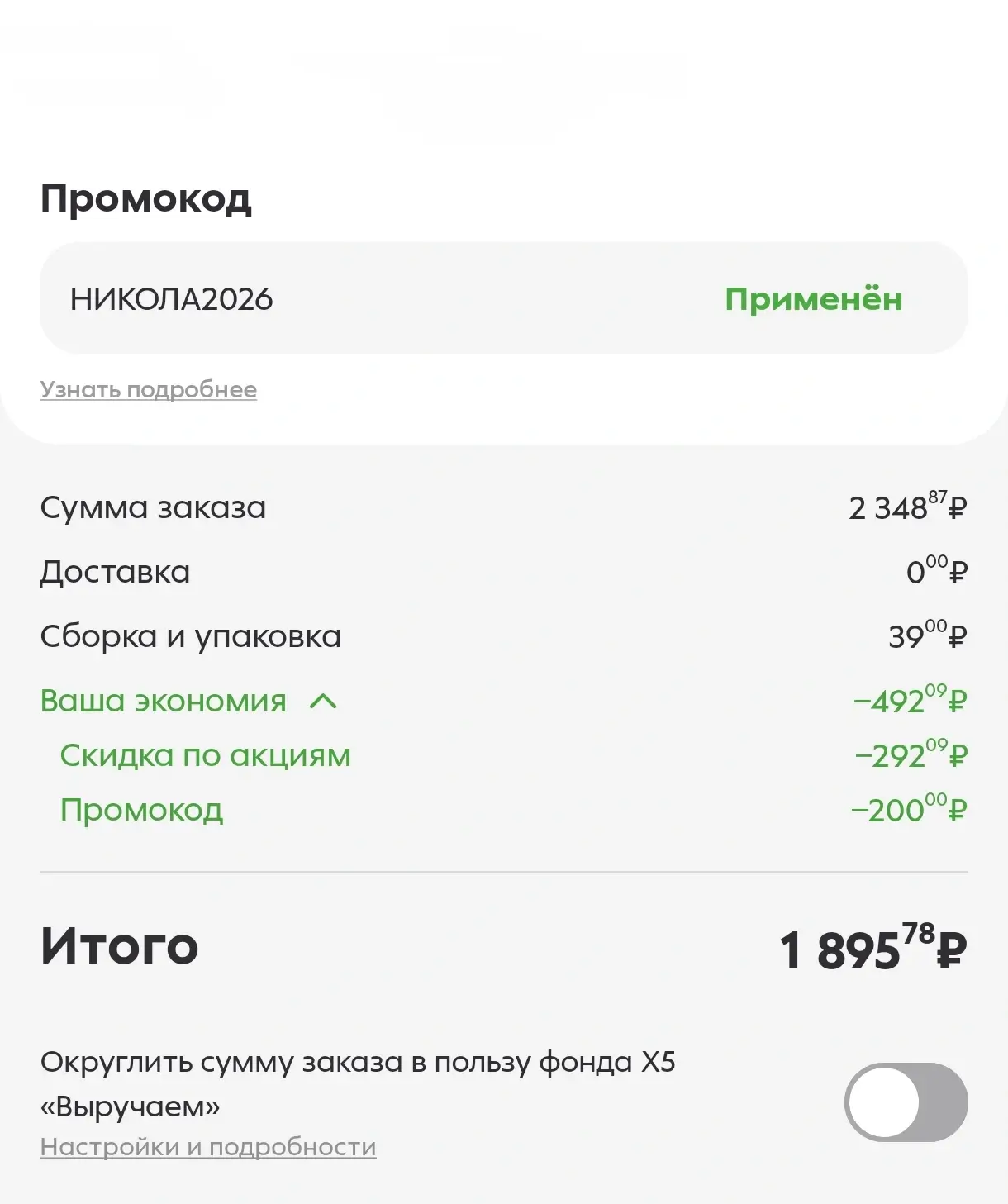 В мобильном приложении или на сайте «Пятёрочка» вы можете получить скидку 200 рублей на заказ с доставкой. Для получения скидки воспользуйтесь промокодом НИКОЛА2026.