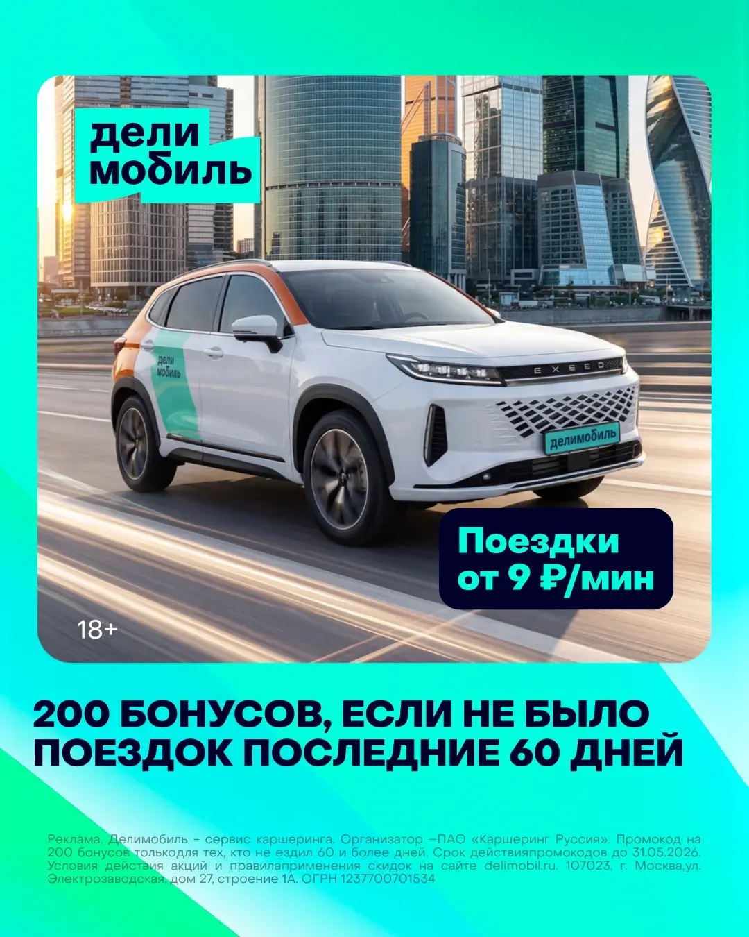 Делимобиль начисляет 200 дополнительных бонусов для пользователей, которые не совершали поездок 60 и более дней.