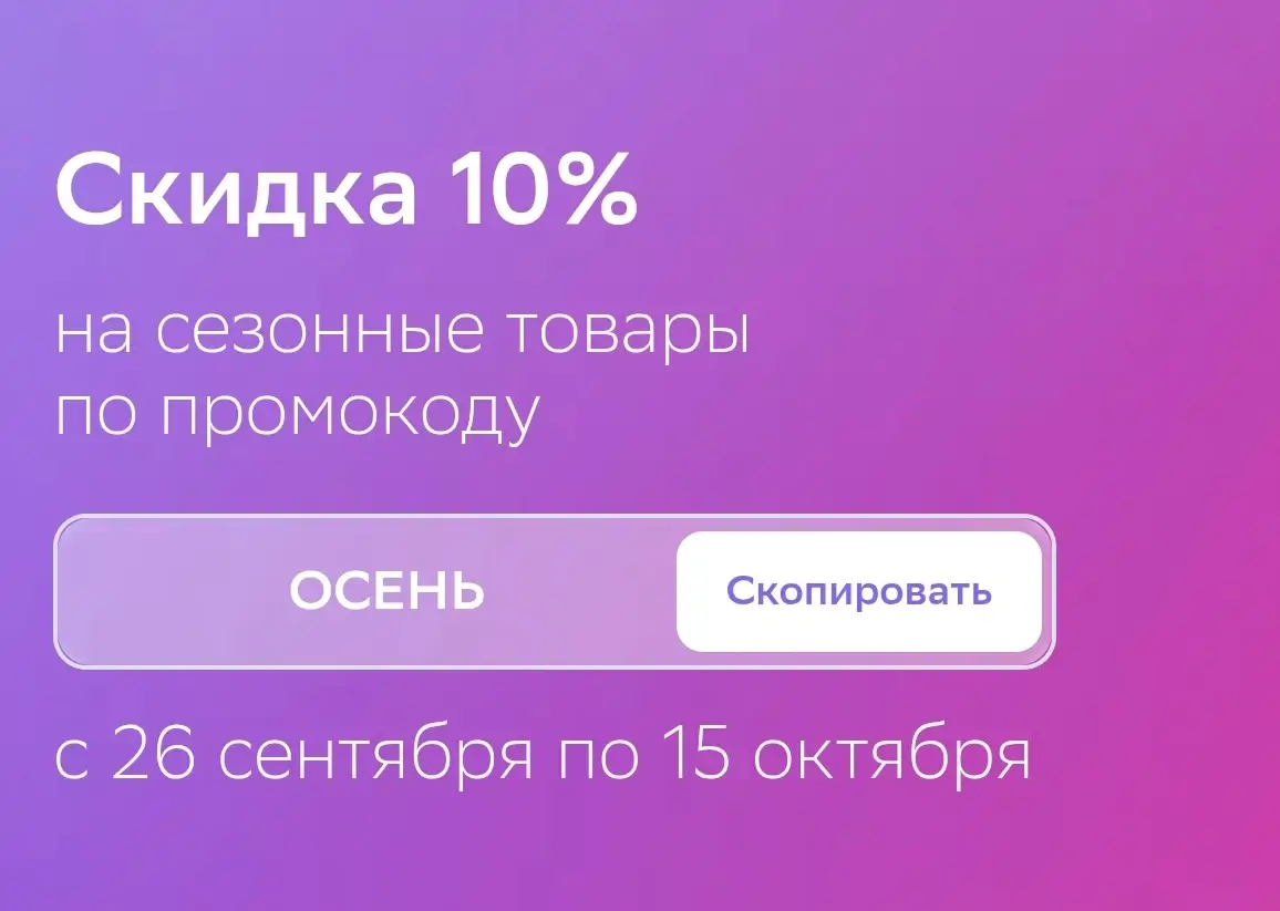 До 15 октября включительно, приобретайте лекарственные препараты, витамины и другие товары из веделенного ассортимента - "сезонные товары" в сервисе Еаптека с дополнительной скидкой 10%.