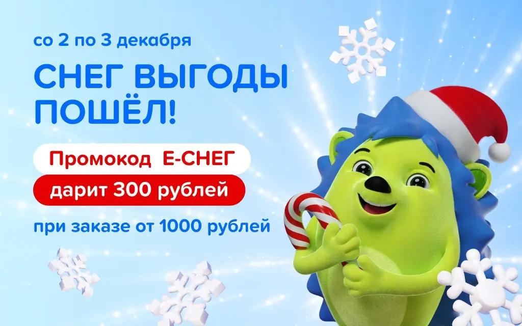 Два дня, 2 и 3 декабря включительно, оформите заказ на сумму не менее 1000 рублей с самовывозом или доставкой на сайте в мобильном приложении Fix Price. Активируйте промокод Е-СНЕГ и получите дополнительную скидку 300 рублей.