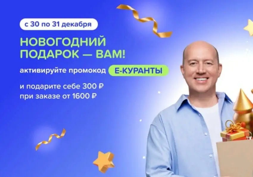 Два дня, 30 и 31 декабря включительно, оформите заказ на сумму не менее 1600 рублей с самовывозом или доставкой на сайте или в мобильном приложении Fix Price. Активируйте промокод Е-КУРАНТЫ и получите дополнительную скидку 300 рублей.