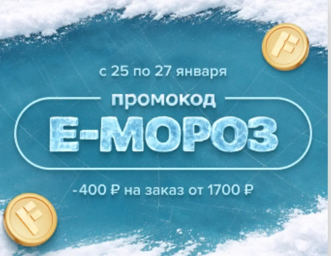 С 25 по 27 января включительно, получите дополнительную скидку 400 рублей по промокоду Е-МОРОЗ при оформлении заказа в мобильном приложении или на сайте Fix Price, скидка действует при заказе от 1700 рублей, распространяется на доставку, экспресс-доставку и самовывоз.