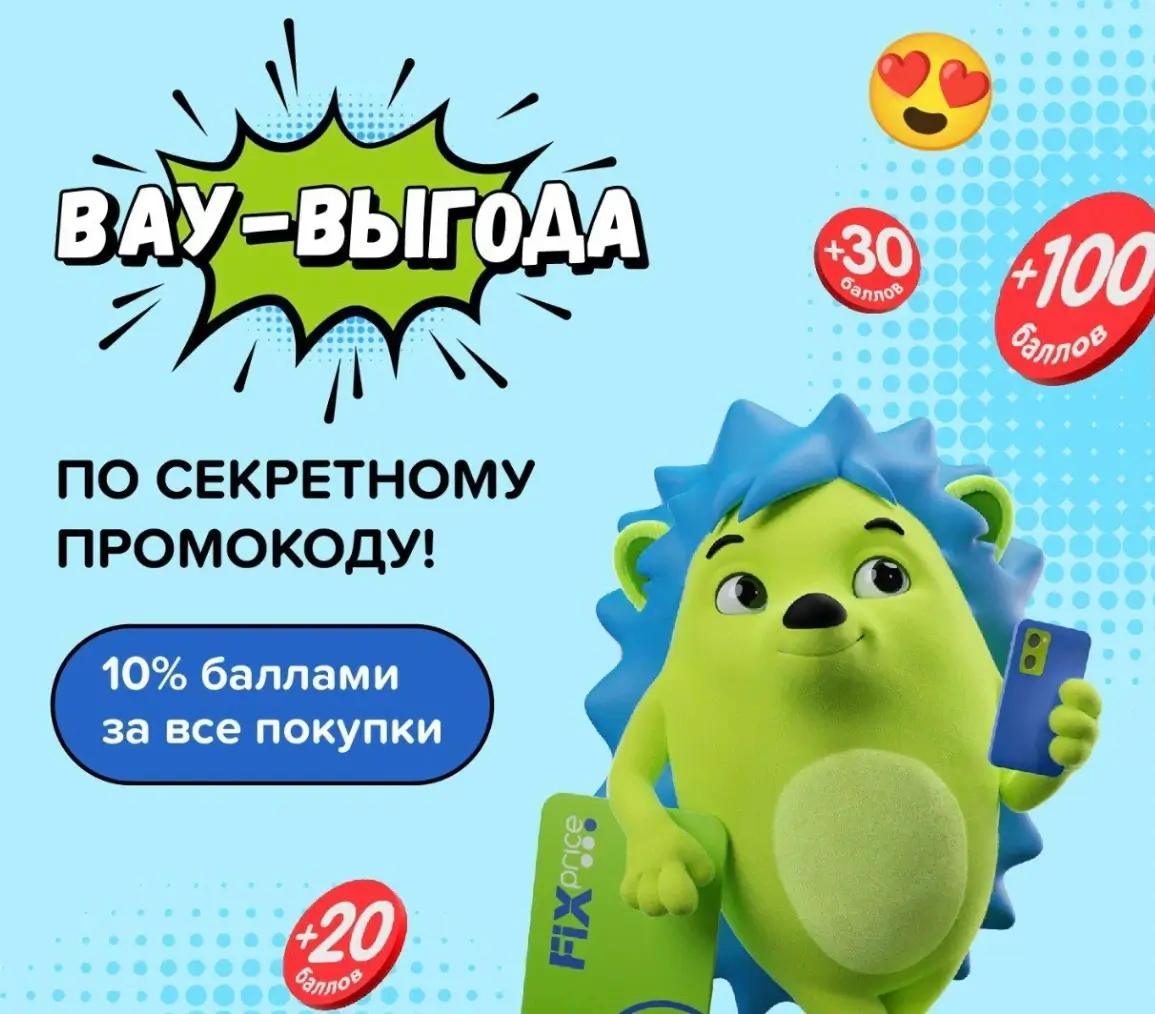 Только сегодня, 27 января, вы можете активировать промокод 5F957U5UU3 в мобильном приложении или на сайте Fix Price. С ним вы получите 10 % баллами с каждой покупки, совершённой 28 января.