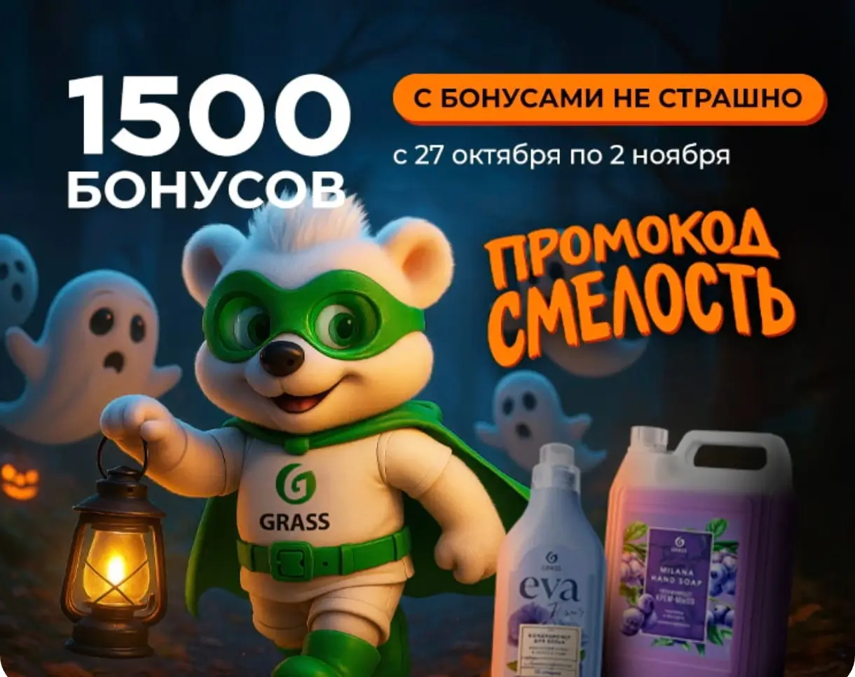 Активируйте промокод СМЕЛОСТЬ, с ним вам станут доступны 1500 бонусов которые можно использовать в магазине Grass для получения дополнительной скидки до 30% на любой заказ.