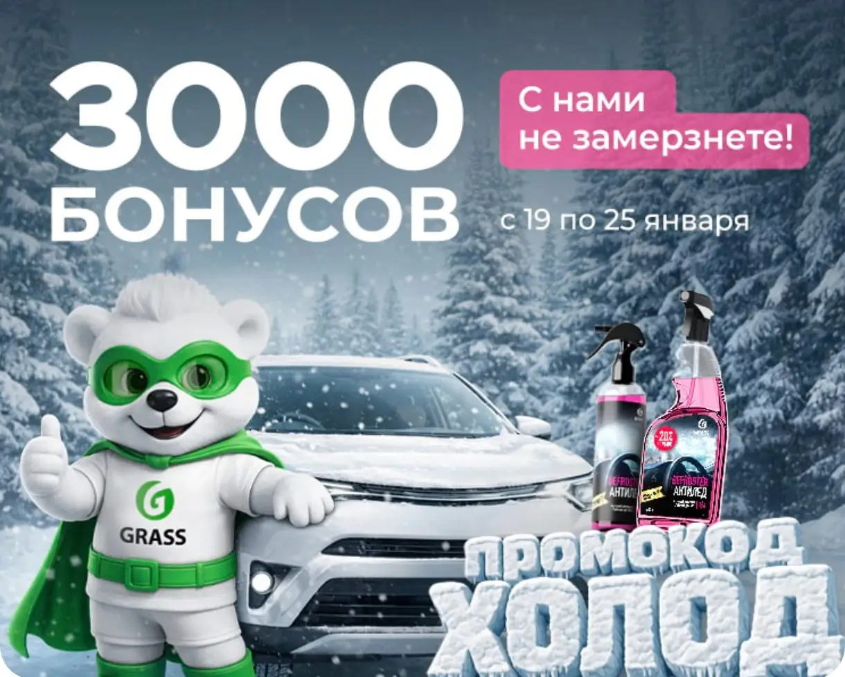 Активируйте промокод ХОЛОД, по нему вам станут доступны 3000 бонусов которые можно использовать в магазине Grass для получения дополнительной скидки до 30% на любой заказ.