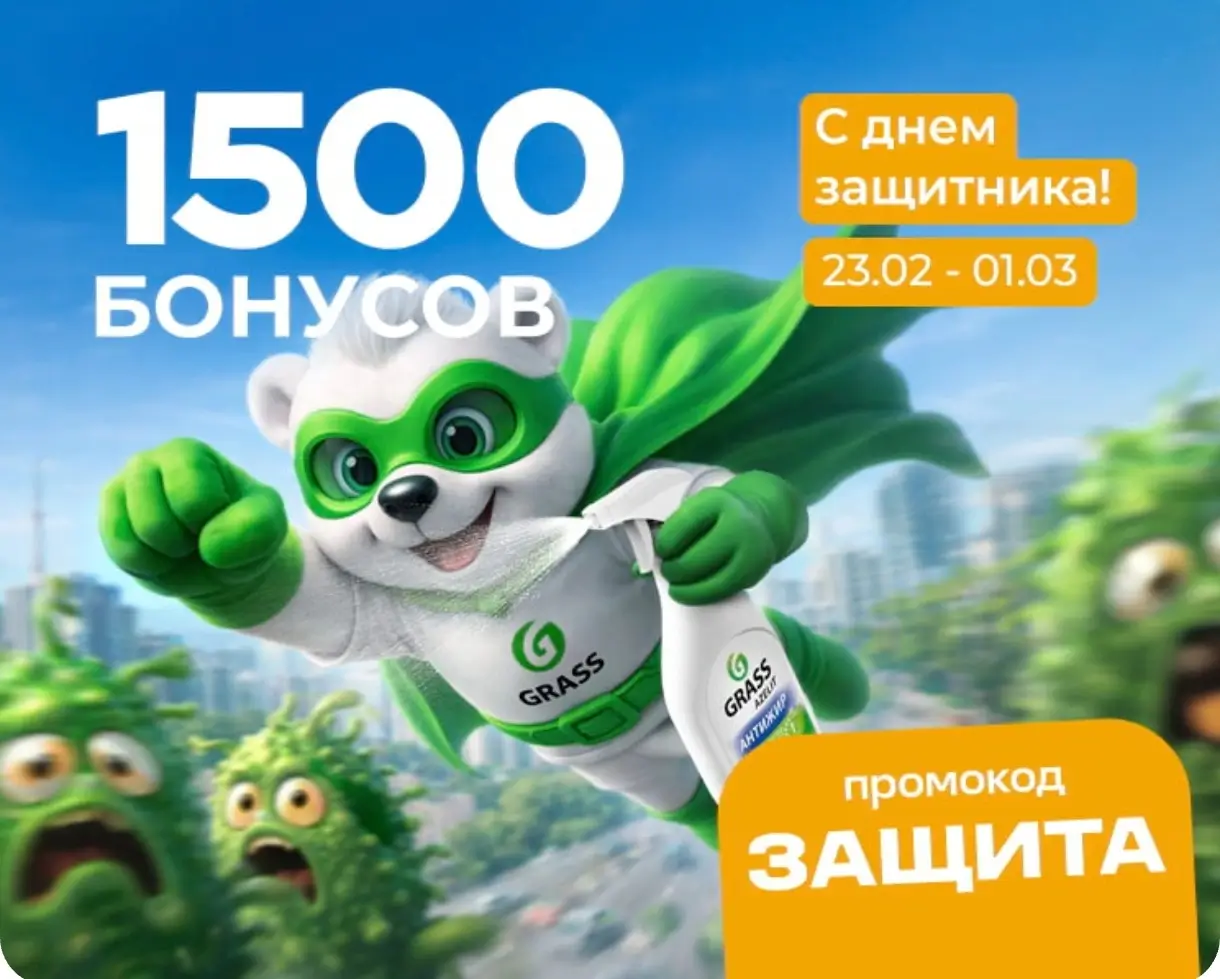 В интернет-магазине Grass действует новый промокод ЗАЩИТА: по которому вы получите 1500 бонусов, которые можно потратить для получения дополнительной скидки до 30% на любой заказ.