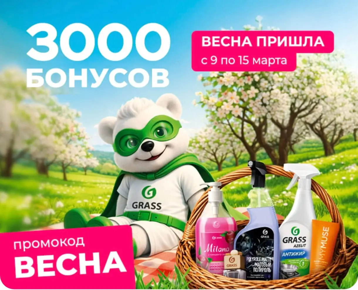 Воспользуйтесь новым промокодом ВЕСНА по которому вы получите 3000 бонусов, их можно потратить в магазине Grass и получить дополнительную скидку до 30% на любой заказ.