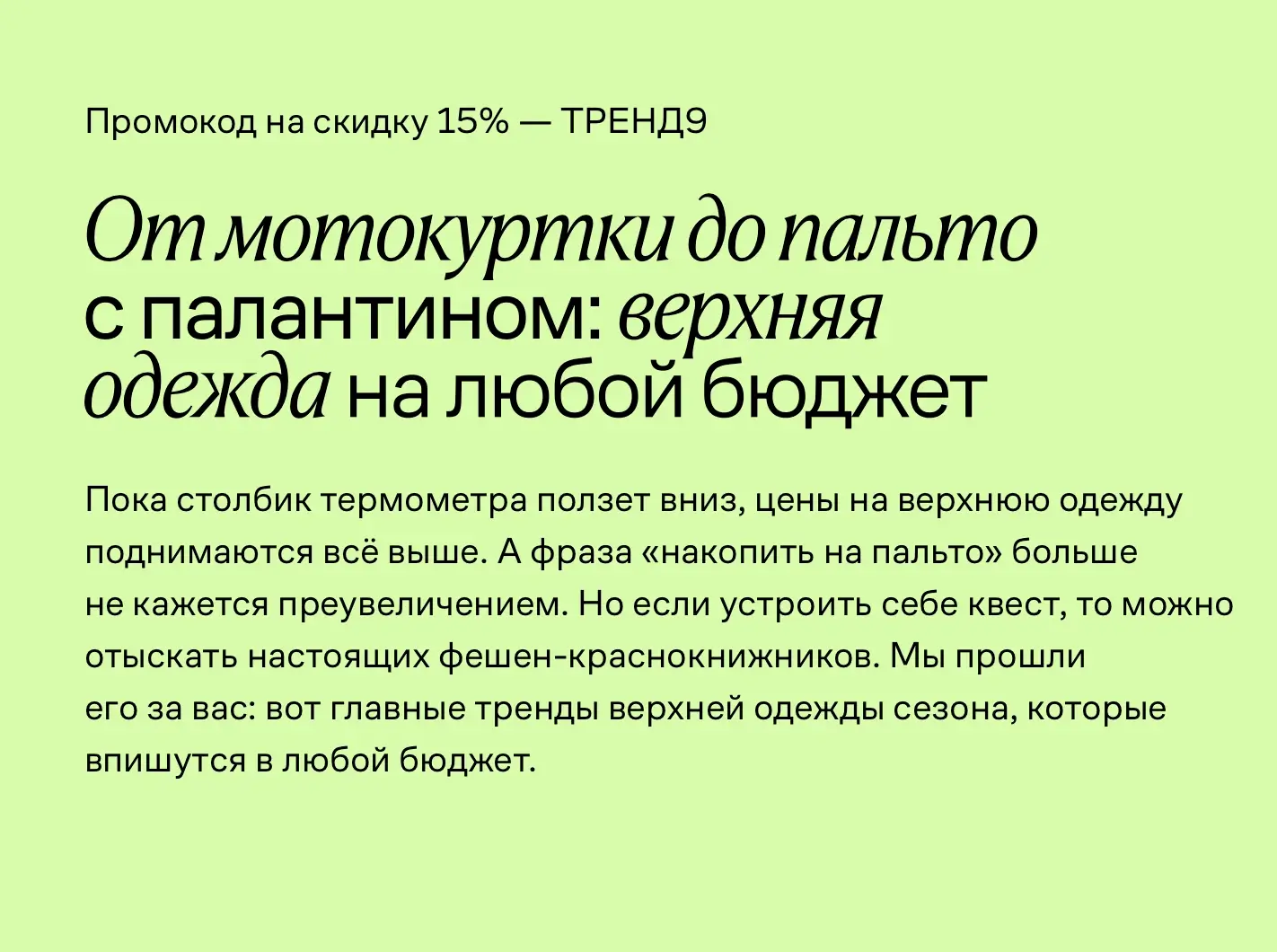 ТРЕНД9 - новый промокод на получение дополнительной скидки 15% в интернет-магазине одежды Lamoda до 14 ноября включительно.