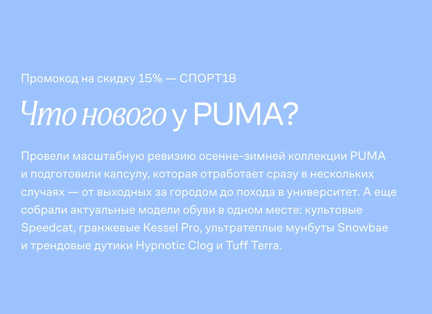 С 14 по 17 октября 2025 года включительно на Lamoda действует скидка 15% на любой заказ: для ее получения, просто введите промокод СПОРТ18 при оформлении заказа.