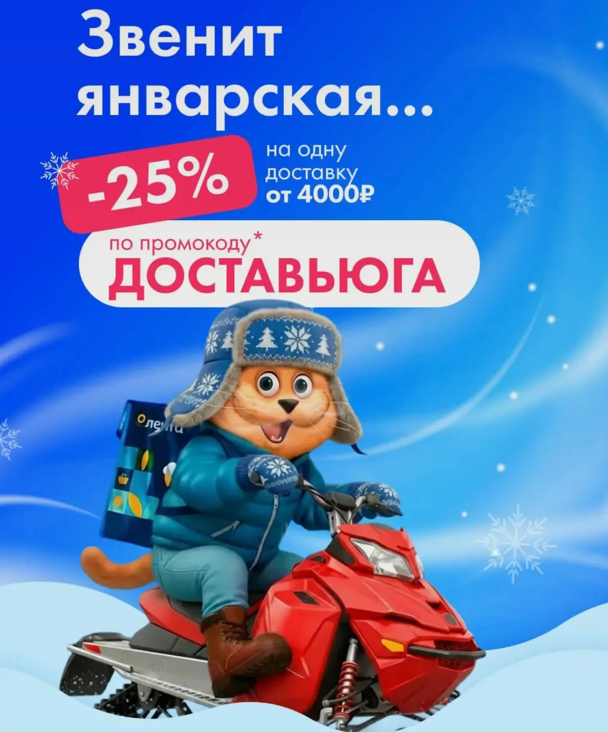 Воспользуйтесь новым промокодом - ДОСТАВЬЮГА на сайте или в мобильном приложении Ленты, с ним вы сможете получить скидку 25% на 1 заказ доставки из «Гипер Ленты» от 4000 рублей.