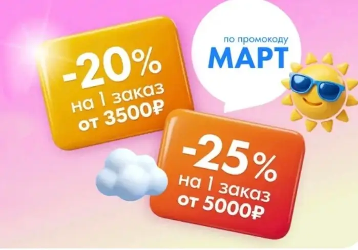 С 10 по 12 марта, в Ленте Онлайн вы можете воспользоваться промокодом МАРТ для получения дополнительной скидки 20% от 3500 рублей или скидку 25% на заказ от 5 000 рублей. Промокод действует на 1 заказ с доставкой из Гипер Ленты.