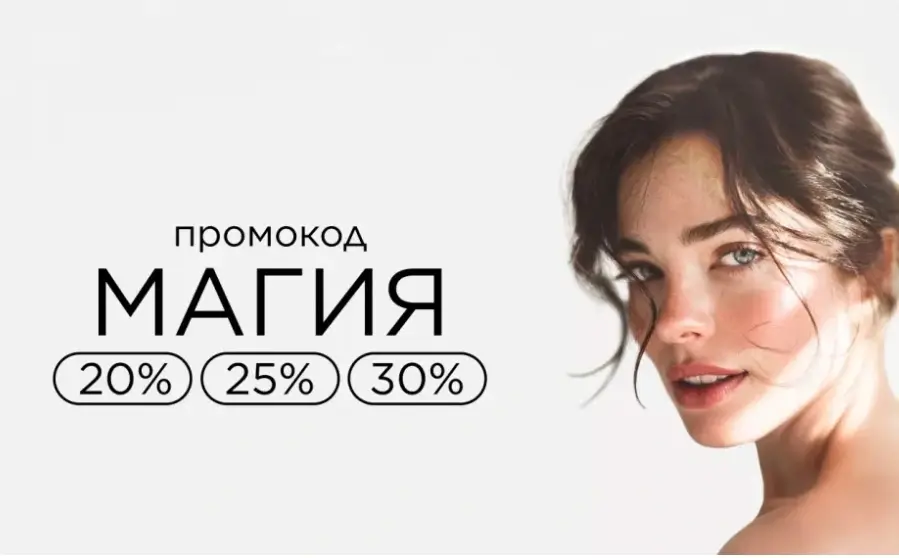 С 15 по 31 октября включительно, получите скидку от 20 до 30% на товары участники с преминением промокода МАГИЯ в интернет-магазине Л'Этуаль. Промокод действует на каждый заказ товаров участвующих в акции, имеет 3 варианта действия: