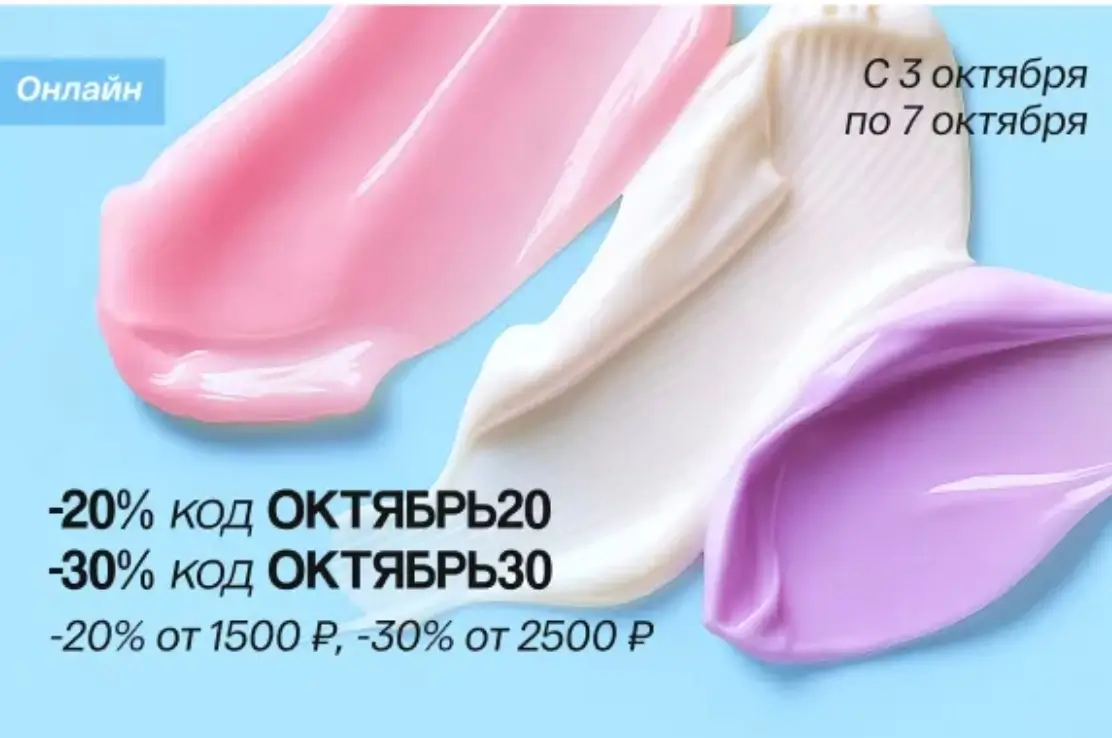 Только до 7 октября включительно при покупке в интернет-магазине или мобильном приложении «Подружка» вы можете получить дополнительную скидку до 30% в зависимости от суммы заказа, используя специальные промокоды.