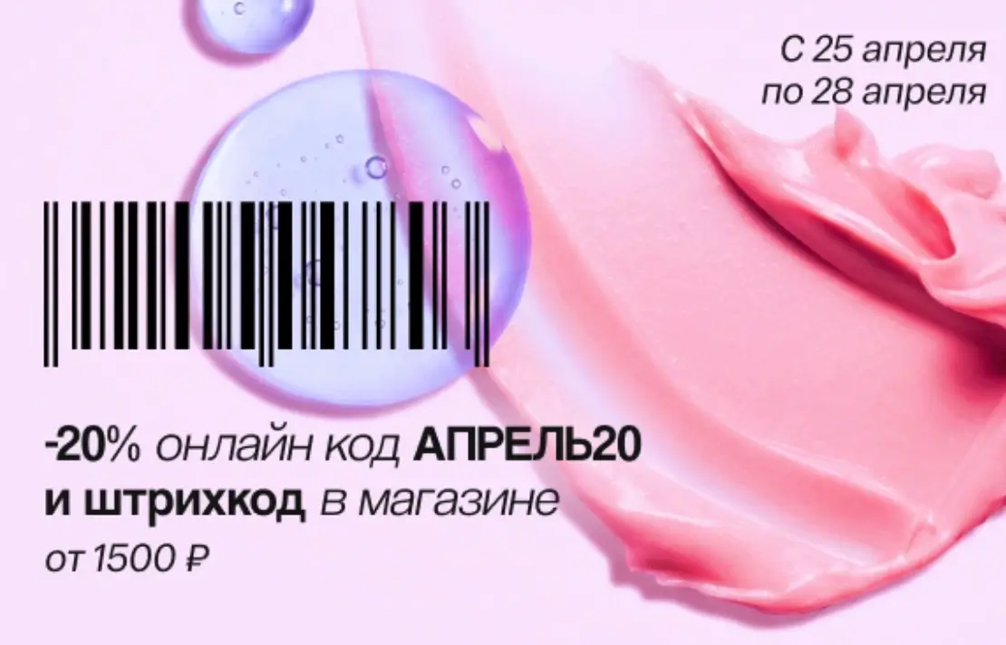 АПРЕЛЬ20 - скидка 20% при покупке от 1500 рублей
