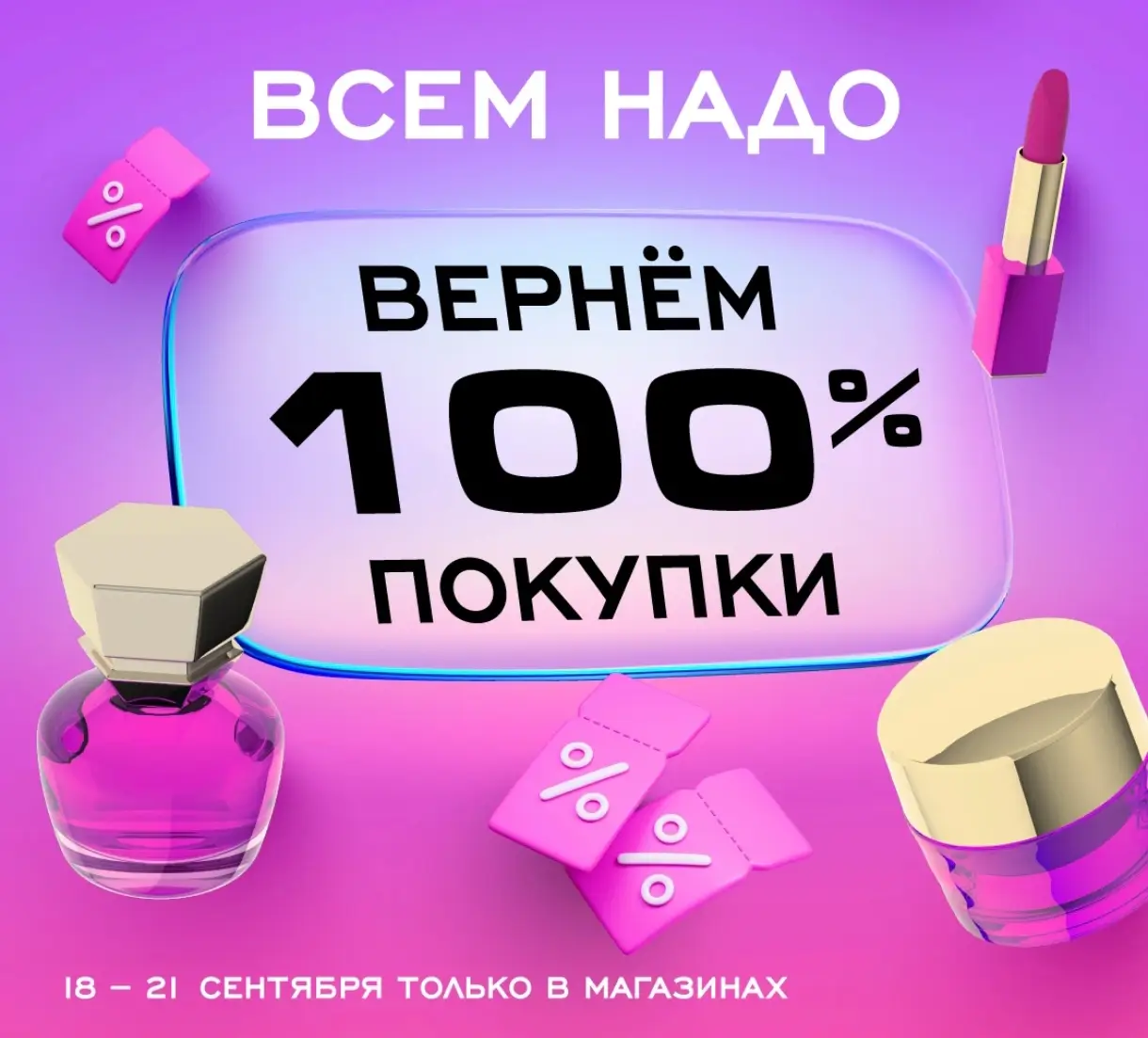 До 21 сентября включительно, получите кешбэк бонусами 100%, во всех розничных магазинах сети РИВ ГОШ при покупке любых бьюти-товаров. Максимальное количество начисленных бонусов за любую покупку составляет 20 000.