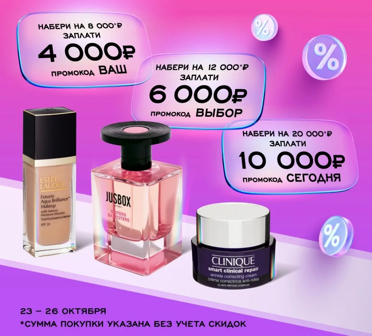 С 23 до 26 октября включительно, в сети магазинов РИВ ГОШ действуют сразу 3 новых промокода. Для получения скидки 4000 рублей, при заказе от 8000 рублей используйте код «ВАШ». Если сумма вашей покупки превышает 12000 рублей, промокод «ВЫБОР» подарит скидку 6000 рублей. А максимальную выгоду вы получите на заказ от 20000 рублей применив промокод «СЕГОДНЯ», который позволит сэкономить целых 10000 рублей.