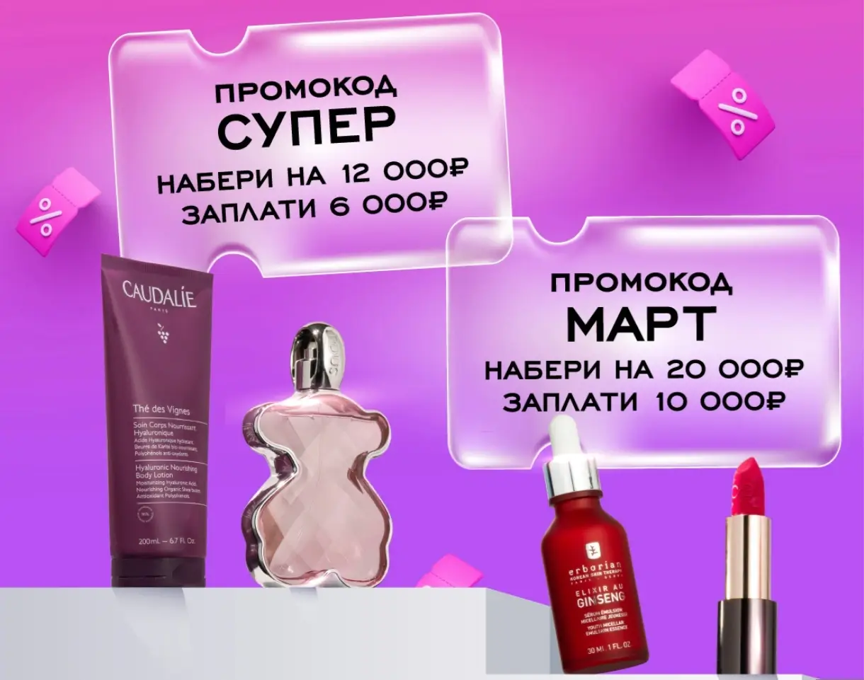 Три дня, с 20 по 22 марта включительно, во всех магазинах сети РИВ ГОШ вы можете воспользоваться двумя промокодами по которым вам будет доступна скидка 6000 или 10000 рублей. Сумма скидки зависит от суммы заказа: