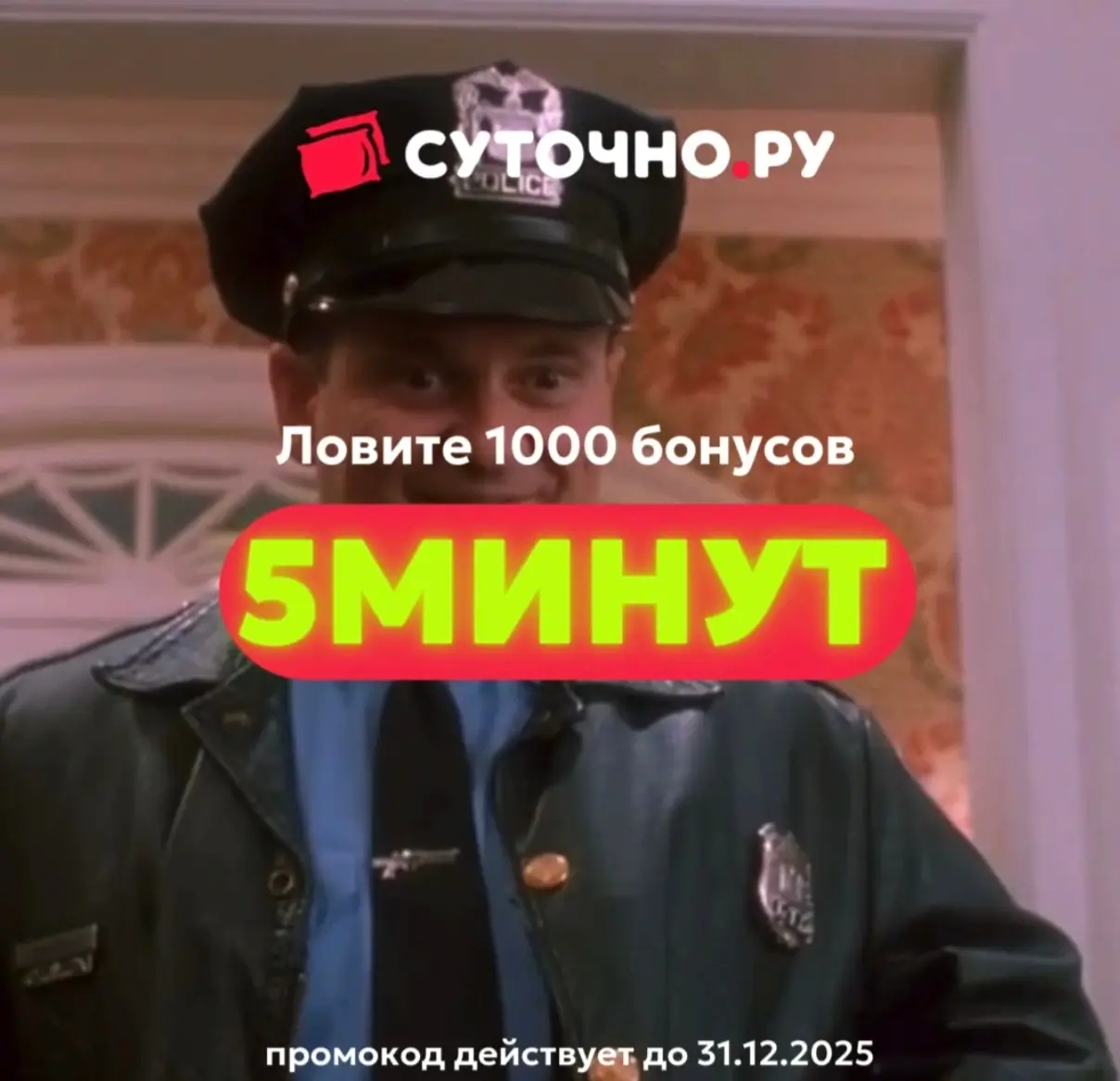 Новый промокод 5МИНУТ даст возможность получить 1000 бонусов для бронирования любого жилья на Суточно.ру. Действует до 31 декабря включительно.
