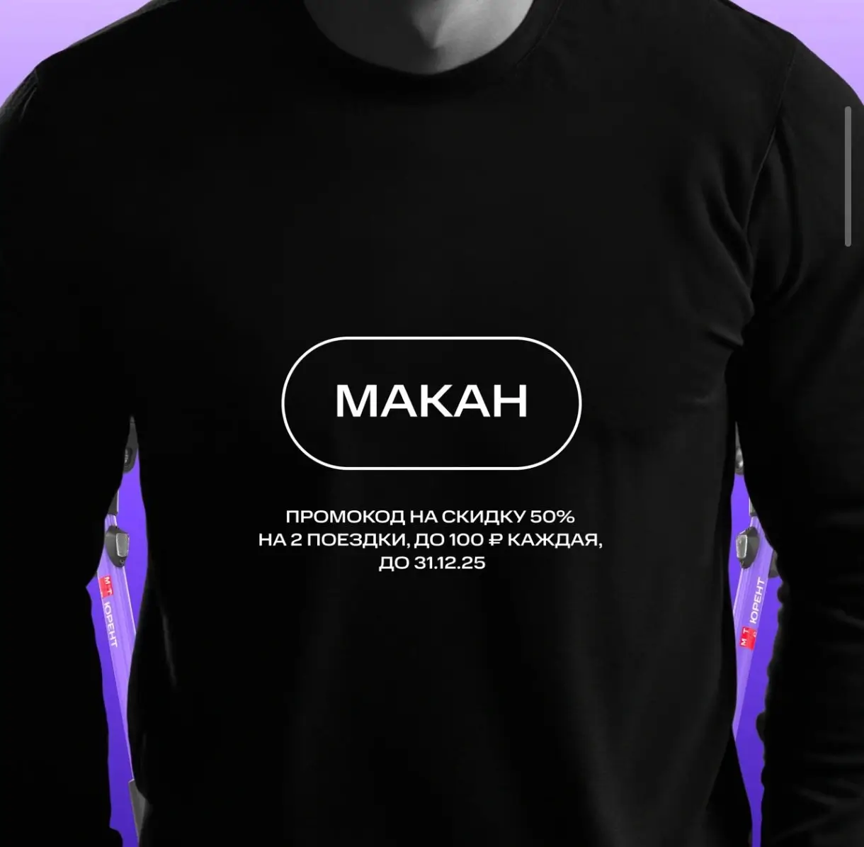 До 31 декабря сервис Юрент дарит всем пользователям сервиса скидку 50% на 2 поездки по промокоду МАКАН.