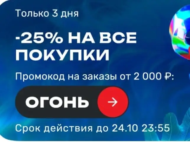 С 22 по 24 октября в интернет-магазине USMall действует промокод ОГОНЬ, по которому вам будет доступна дополнительная скидка 25% на все товары.