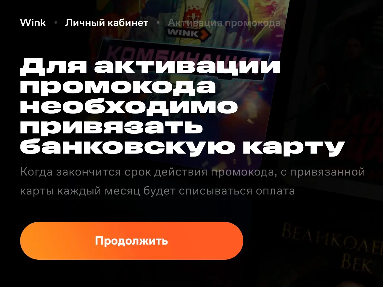 Для пользователей, не имеющих активной подписки на сервис Wink, действует специальное предложение: с помощью промокода V975QZIEGH можно активировать 30-дневный бесплатный доступ к сервису.