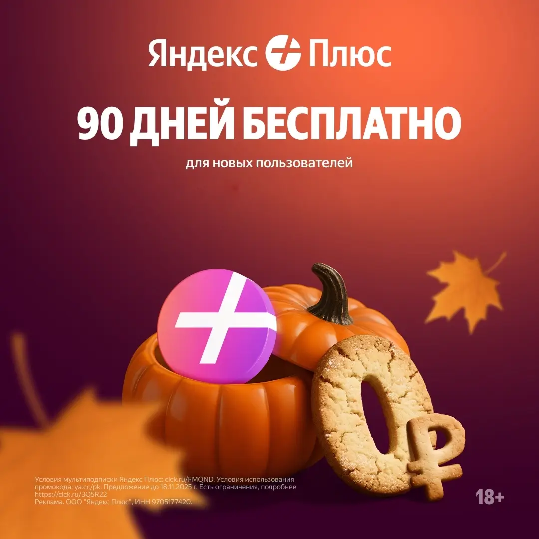 С 16 по 18 ноября для новых пользователей действует предложение: 90 дней подписки Яндекс Плюс без оплаты. В этот период можно пользоваться всеми ключевыми функциями: смотреть фильмы и сериалы на Кинопоиске, слушать музыку и использовать баллы в сервисах Яндекса.